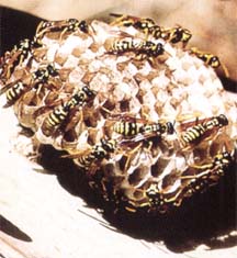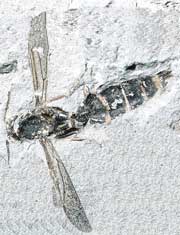 Oikealla on miljoonien vuosien ikäiseksi arvioitu Polistes-ampiaisen fossiili, joka löydettiin tertiäärikerrostumista Willershausenista. Vasemmalla puolella on nykyisin elävän Polistes-ampiaisen pesä Etelä-Euroopasta.