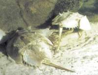 Vasemmalla on eläviä molukkirapuja, Limulus polyphemus. Oikealla Solnhofenin kalkkikivikerrostumista Saksasta löydetty Limulus-fossiili, jonka iäksi oletetaan 140 miljoonaa vuotta. Todellinen haaste evoluutiolle!
